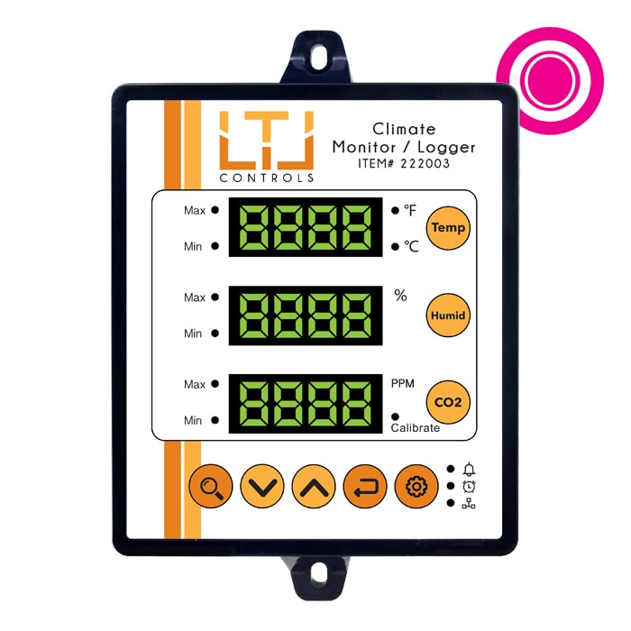 The LTL Controls Climate Monitor & Logger unit is a simple and affordable way to monitor your grow room. The front panel of the unit consists of three main LED screens for the display of temperature, humidity, and CO2 PPM status respectively. It is easy to monitor your grow room by setting the max/min setpoint of temperature, humidity, and CO2 to your desire. The unit also features a connection to your network by an optional IoT SPI to ethernet adapter, which can be purchased separately. Using the remote control application for your Android, iOS smartphone or tablet, you can monitor the environment of your grow room anytime and anywhere and have warnings sent to your phone if the growing environment exceeds your max/min setpoint. The three-in-one remote SA-S81 sensor is placed in the grow room to sense the growing environment while the Climate Monitor and Logger can be positioned outside for easy reading and monitoring. Take control of your grow room with LTL Controls!