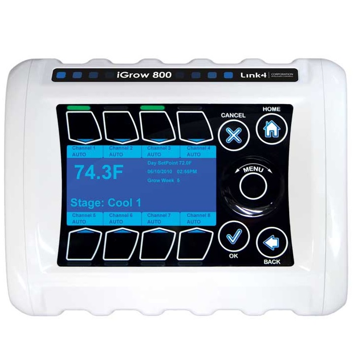 Get real-time energy use and track run-time on greenhouse heating and cooling equipment with this easy-to-use controller system. The iGrow 800 series offers eight different ouputs for fans, heaters, vents, irrigation, shade curtains (blackout curtains), and more – with Cloud access from any Internet-connected computer or smartphone.
