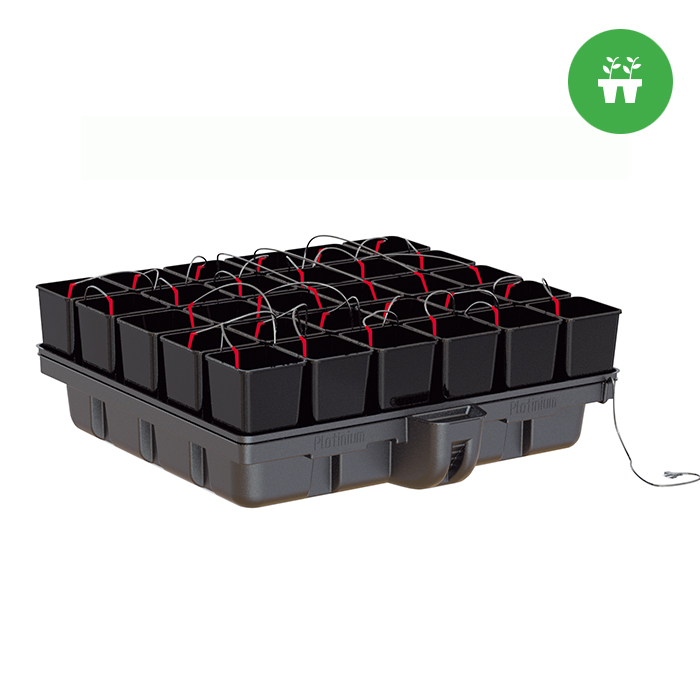 Platinium HydroStar is available in all 5 series. The 40 series features just 4 small square pots, while the 60, 40:90, 100, and 120 series have 6, 10, 20, and 30 pots each, respectively. Each system includes a reservoir, tray, square pots, tubing kit, pump, drippers, and easy access reservoir lid.