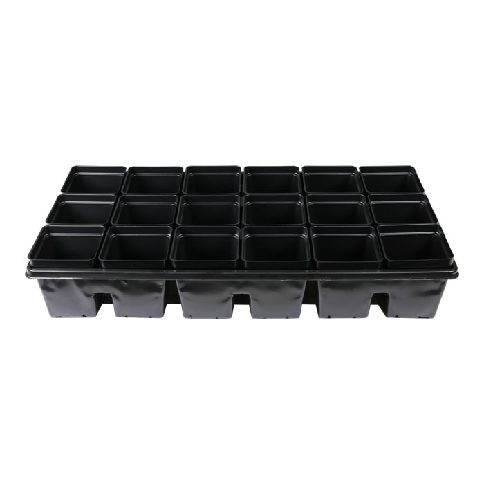 18 Site for 3.25” & 3.5” Square Pots. Measures: L 20″ long x 10″ wide x 3 1/2″ tall
