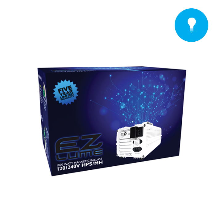 UL Certified and using Aerovox capacitors, the 1000W EZ Lume Magnetic Ballasts are great for the conservative budget. They can mount to walls and ceilings, feature convenient transport/hanging handles, are multi-voltage capable (120/240V), and feature two universal sockets, making them compatible with all reflector types. Their constant wattage output means no lamp flickering and with the flip of a switch they can be converted from MH to HPS ballasts. They have rubber feet to reduce noise and vibration and come with a 120V power cord. The EZ Lume&trade>ballast is made from sturdy, white, powder-coated, aluminum housing and features heat-dispersing fins on all 4 sides. All magnetic ballasts also have a 1 year Full Warranty.