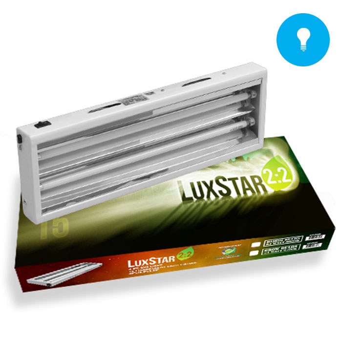 LuxStar2 2′ T5 Fluorescent Light (Grow Bulbs) are 2 foot 2 light fixtures that are perfect space-saving lights as they have a super low profile! These fixtures also emit significantly less heat than other reflectors so they can be placed closer to the tops of plants, giving them that much more light! The LuxStar T5s use high-efficiency digital ballasts and high-output bulbs to create the most efficient light source. They also features dual power switches so you have the option of dimming the fixture by 50%. The LuxStar2 is extremely versatile and can be hung in 3 different ways: overhead, vertical, or horizontal. This unit includes (2) InterLux Grow Bulbs