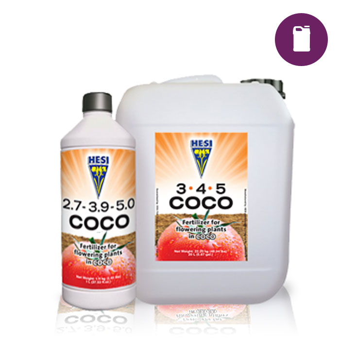 Hesi Coco is THE supplement for flowering on coco substrates. Just like all the Hesi supplements, Coco has been stabilized thanks to complex-binding substances. Coco is not an A & B supplement> the A+B components are united in one bottle. Coco contains both organic and mineral nitrogen. All trace elements have been stabilized and enriched with vitamins and other vital elements for flowering.