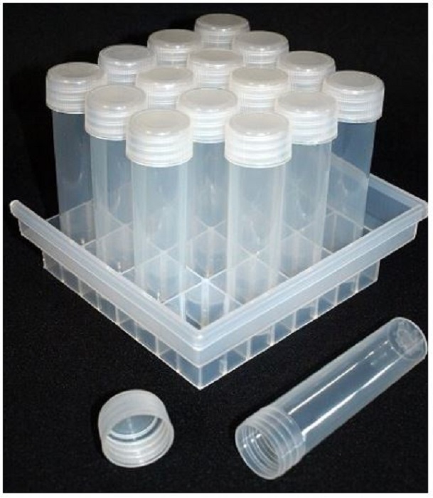 Autoclaveable polypropylene plastic tray, 36 site, and 36 tubes.