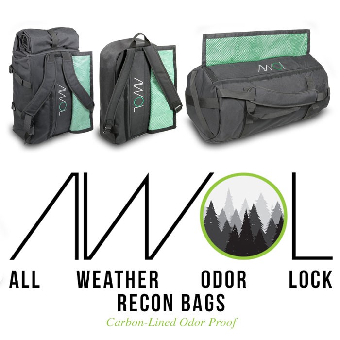 AWOL bags are made with the highest quality fabrics, hardware, and stitching in the textile industry. These high quality materials deliver an odor locking power unrivaled by any other backpack on the market. Durable, water repellant, and odor proof, AWOL will carry your harvest safely wherever you go. The bag’s outer shell is made from a heavy duty specialized material giving it it’s rugged feel, water repellent protection, and quality appearance. This same material is featured on many tactical bags in military gear and in high-durability luggage products. The inside of the bag features an odor capturing activated carbon lining protected by a thick nylon mesh. In addition to being larger, we have included reinforced stitching to hold the extra weight, nylon mesh to protect the carbon lining, and thicker straps and handles to prevent tearing and increase comfort. A key feature of the AWOL backpacks is the closure system> the wetsuit zipper and double flap keep the moisture out and keep in the smell. Never worry again about your stank. With AWOL bags you can take your harvest to the Bank!