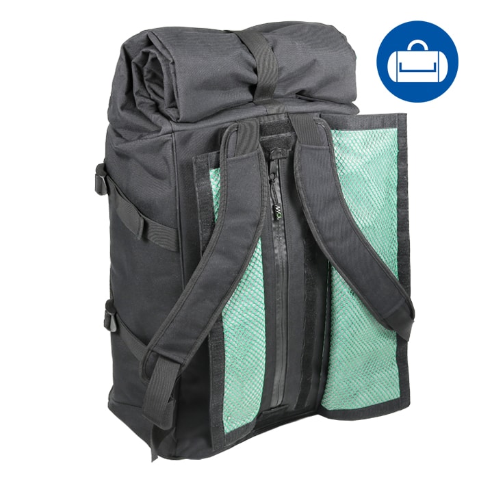 AWOL bags are made with the highest quality fabrics, hardware, and stitching in the textile industry. These high quality materials deliver an odor locking power unrivaled by any other backpack on the market. Durable, water repellant, and odor proof, AWOL will carry your harvest safely wherever you go. The bag’s outer shell is made from a heavy duty specialized material giving it it’s rugged feel, water repellent protection, and quality appearance. This same material is featured on many tactical bags in military gear and in high-durability luggage products. The inside of the bag features an odor capturing activated carbon lining protected by a thick nylon mesh. In addition to being larger, we have included reinforced stitching to hold the extra weight, nylon mesh to protect the carbon lining, and thicker straps and handles to prevent tearing and increase comfort. The AWOL XL Roll-UP Backpack also features additional space that can be accessed on demand by unrolling the additional fabric at the top of the pack. Once you are done using the extra space simply Roll-UP the fabric for a more compact bag. A key feature of the AWOL backpacks is the closure system> the wetsuit zipper and double flap keep the moisture out and keep in the smell. Never worry again about your stank. With AWOL bags you can take your harvest to the Bank!