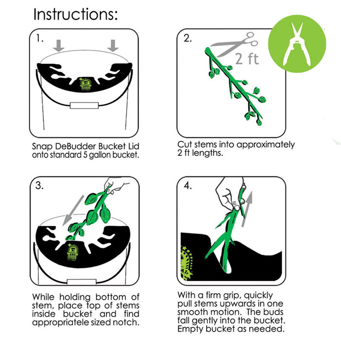 The Official DeBudder Bucket Lid was designed to save you significant time and money on the debudding process. This product has been scientifically engineered to handle any size and shape stem, is built from a solid one piece design, is easy to clean, and does not damage the buds. The Original 420 Brand Debudder Bucket Lid will pay for itself within 30 minutes and it comes with a lifetime guarantee!