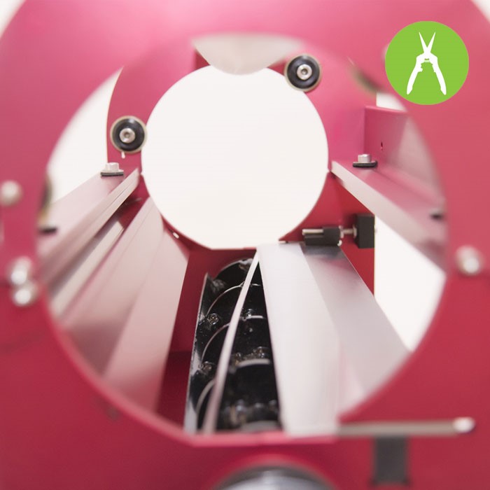 Centurion machines are the only brand that uses a unique diverter to help fine tune the flow and cut on different strains giving the grower the ability to quickly adjust to different strains, or density of flowers. These diverters are how the machine can process dry flowers so delicately while still ensuring a tight clean cut and finish!