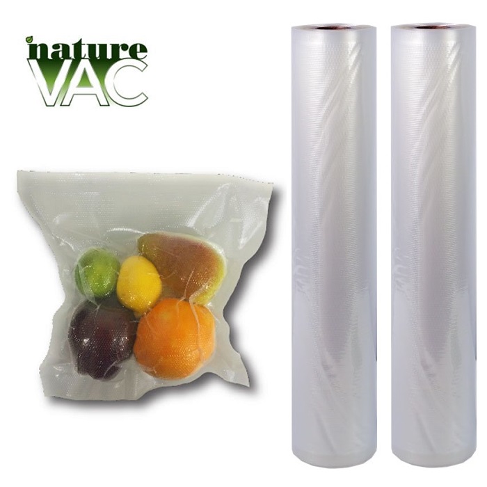 NatureVac keeps food fresh up to 5 times longer! Seal in meats, herbs, seafood, fruits, vegetables, grains, pasta, lentils, cheese, coffee, leftovers and more! NatureVac 11”x19.5&quot>, rolls allow you to cut each bag to your ideal size, maximizing your dollar. NatureVac, with its honeycomb vacuum power technology, blocks out harmful light and optimizes product visibility. This new material is thicker and stronger for ultimate durability. Locks out moisture and air, reduces freezer burn, and Seals in freshness. NatureVac rolls are compatible with NatureVac brand sealers and most other brands.