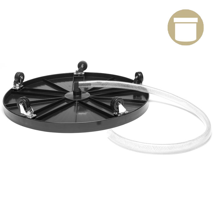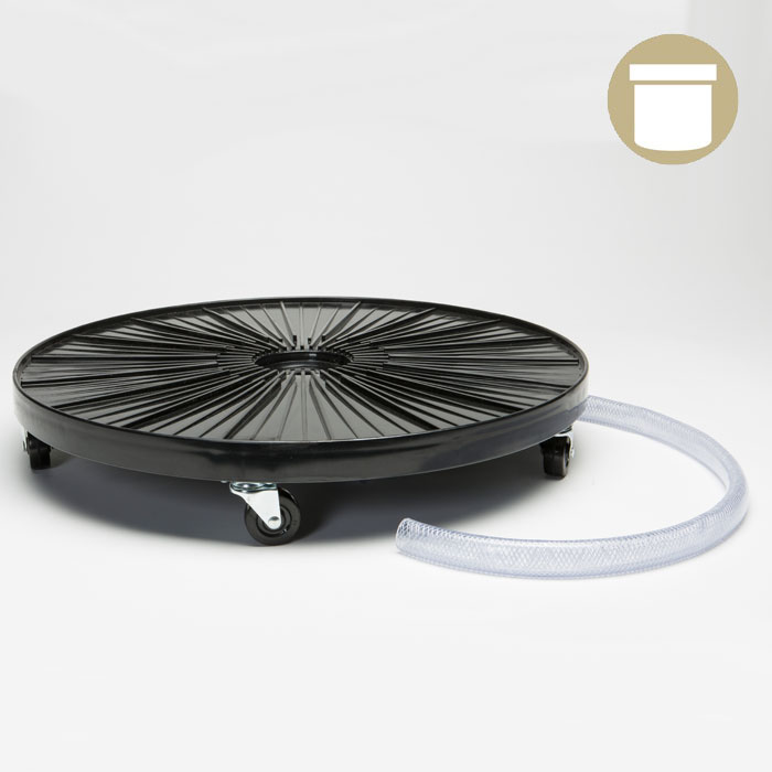 Easily move and hydrate heavy plants with the Hydro Dolly. Designed with steel swivel casters and rubber wheels. It allows large plants to be moved safely and with ease. Constructed with quality materials, this weather resistant Plant Dolly will not deteriorate in harsh weather conditions and will last for years to come.